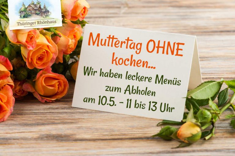 Liebe Gäste, am 10. Mai ist Muttertag. Um diesen Tag rundum genießen zu können, haben wir uns leckere Menüs zum Abholen für Sie ausgedacht. Zur besseren Planung bitten wir euch um Vorbestellung bis Freitag 18 Uhr. Bestellt einfach unter: Telefon: 036946 32060 (AB ist geschaltet)